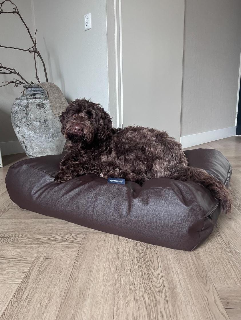 Dog bed chocolate brown leather look extra small