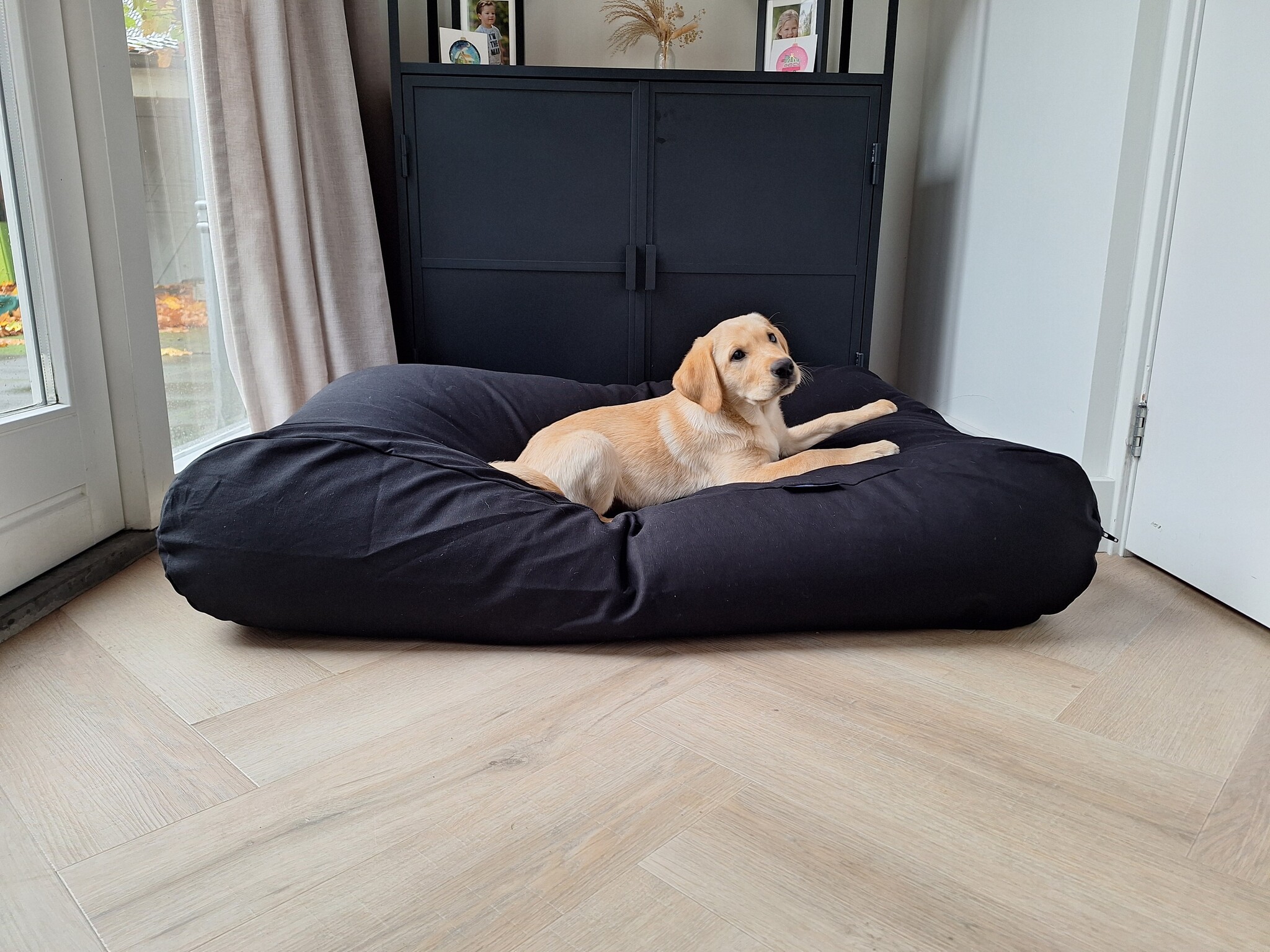 The black dog bed cover fits into any interior. Modern, rural, classic or industrial. It is a feast for the eye and the interior. The outside cover has a zipper on the side so you can easily take the innerbed out. The outside cover can therefore be washed.