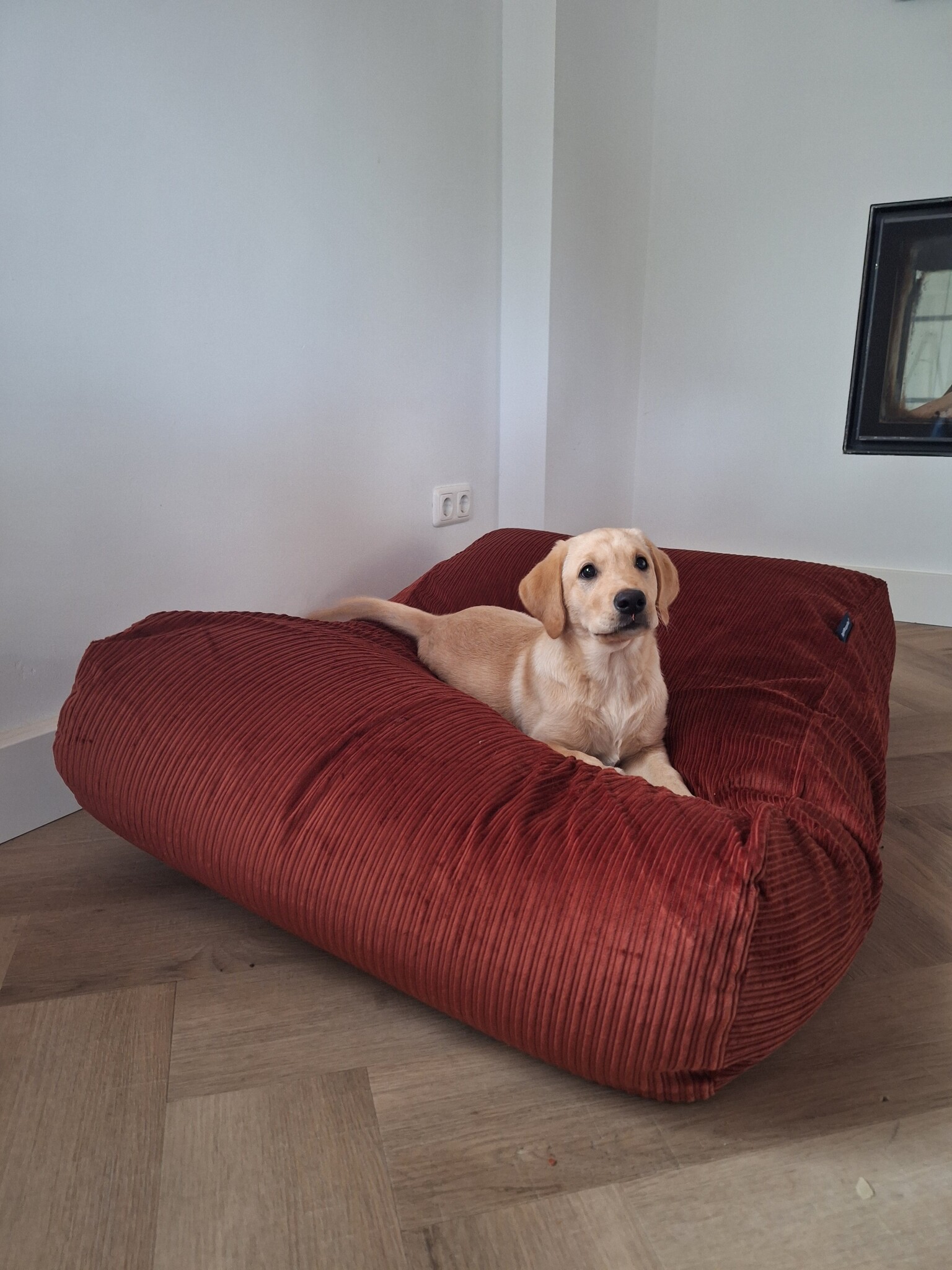 Lit pour chien brique double velours côtelé superlarge